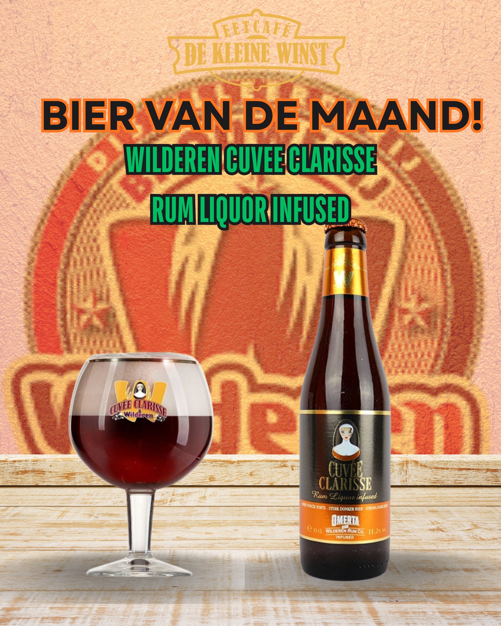 Wilderen Cuvee Clarisse Rum Liquor Infused is een uniek en krachtig bier dat ontstaan is uit een samenwerking tussen de Belgische brouwerij en distilleerderij Wilderen. Dit bier is gebaseerd op de Wilderen Cuvée Clarisse, een donker en moutig bier met een volle smaak en een zachte afdronk. De toevoeging van de Omerta Rum Liquor geeft het bier warmte, zoetheid en complexiteit. Deze combinatie resulteert in een donker bier met subtiele aroma’s van rum, fruitige tonen van karamel en exotische vruchten. De kenmerkende, moutige en volle afdronk zorgt voor een zalig genot Het alcoholpercentage van dit zeer speciale bier is 11,2%.